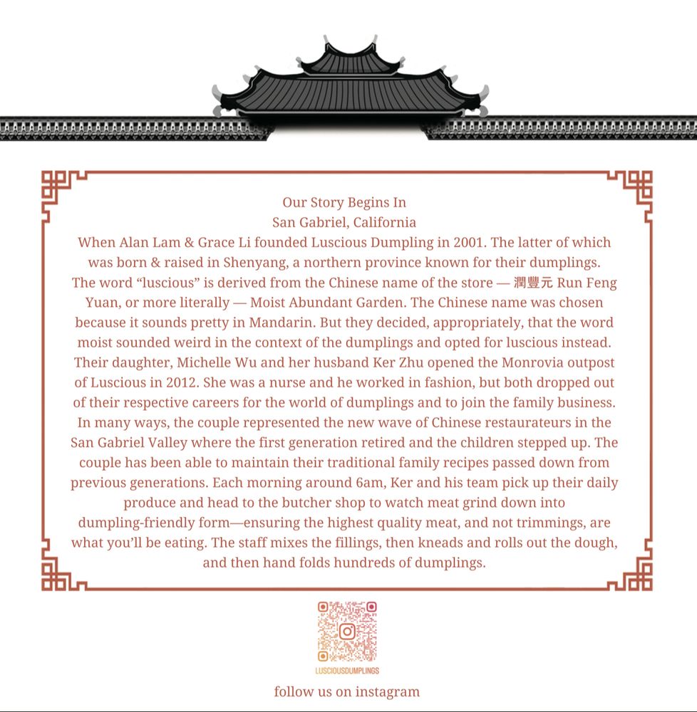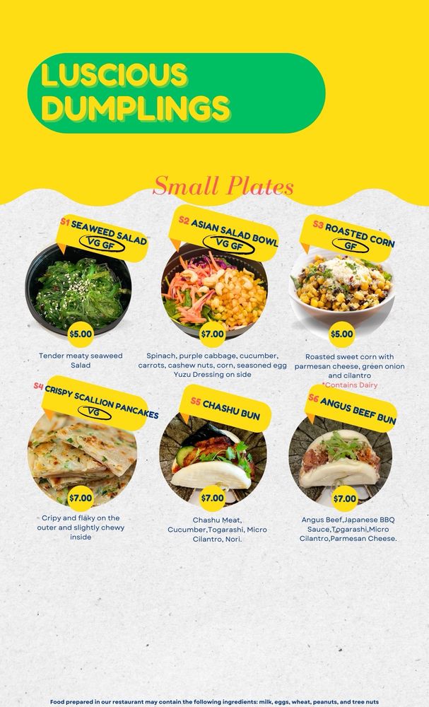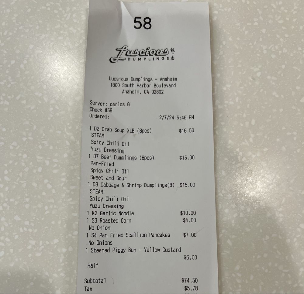 Introducing the menu at Luscious Dumplings, a Chinese restaurant in Anaheim, CA, specializing in steamed soup dumplings, pan-fried potstickers, and steamed bao. Standout dishes include the Crab/Pork Soup Dumplings, Vegan Dumplings, and Pork Potstickers. Customers praise the delicious food and efficient service, although some mention limited parking and wait times during busy hours. With options for vegan and meat lovers alike, Luscious Dumplings offers a cozy atmosphere for a casual meal. The Pork Potstickers are a best-seller since 2001, showcasing the restaurant's commitment to quality and flavor. Overall, Luscious Dumplings is a must-visit spot for dumpling aficionados looking for a unique dining experience in Anaheim.